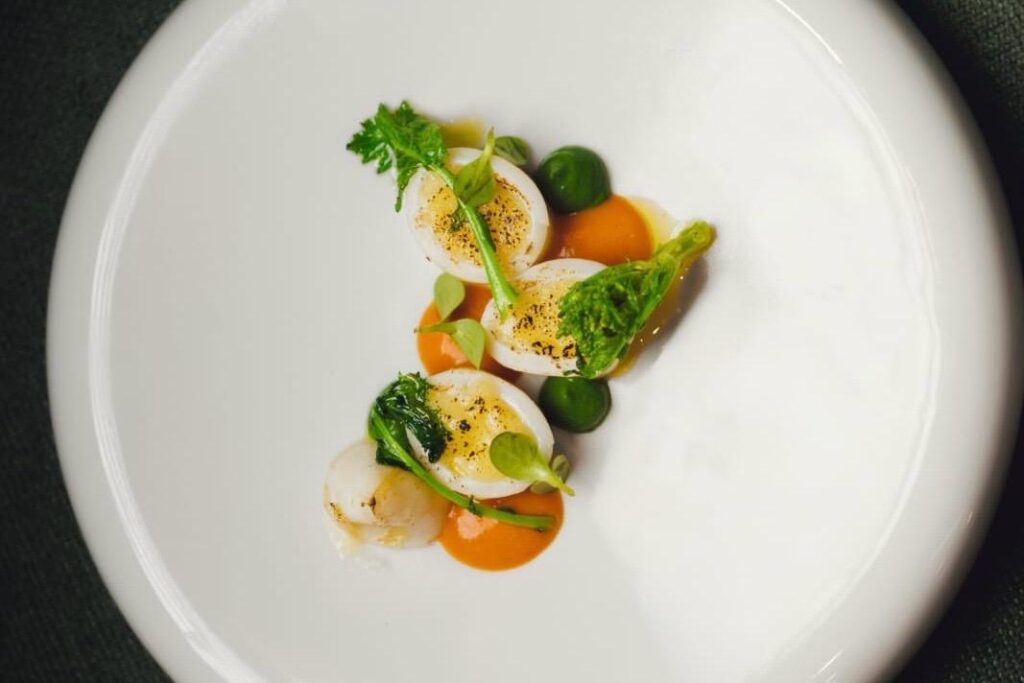 È un plin di arrosto di coniglio, accompagnato da una crema di carota alla vaniglia, un gel di finocchietto selvatico, un fondo di cipolla e mazzancolle. Il piatto gioca su toni caldi, terrosi, attraversati da lampi più chiari e marini. Taglio il plin. La sfoglia cede sottile, il ripieno libera subito un profumo rotondo di arrosto. In bocca la carne è succosa, profonda, la carota ammorbidisce con una dolcezza gentile, la vaniglia resta in sottofondo, appena percettibile. Il finocchietto apre una freschezza aromatica che solleva il morso, il fondo tiene la struttura, la mazzancolla entra in punta, con una salinità pulita che allunga il finale. Il mouthfeel è compatto ma fluido, senza pesantezze. Elio mastica un secondo in più, poi mi guarda. «È preciso. Non c’è niente che spinga troppo». Annuisco. «Tiene tutto in equilibrio. La parte dolce non scappa, l’aromatico non copre».
