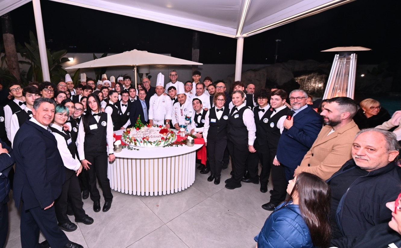 Un ringraziamento particolare è stato rivolto a Dante Ingaglio, imprenditore etneo e titolare del Blu Panorama, che ha ospitato l’evento. Con lui, a ricevere un omaggio e un ringraziamento speciale, tutto l’IPSEOA “Giovanni Falcone” di Giarre (CT), che grazie all’impegno costante della dirigente scolastica, Monica Insanguine, e a tutti i docenti e allievi di cucina, di accoglienza e di sala, ha dimostrato ancora una volta l’alta preparazione e il prestigio di una struttura scolastica di rilievo nazionale e che rappresenta certamente un vanto per tutta la Sicilia; numerosi, dunque, sono stati sia i docenti che gli allievi e le allieve, guidati dal docente Sante Vasta, presenti al Natale del Cuoco e del Pasticcere 2025. Grazie anche all’Associazione Culturale “Saro Ragaglia”, per l’impegno profuso durante l’evento e durante l’anno.