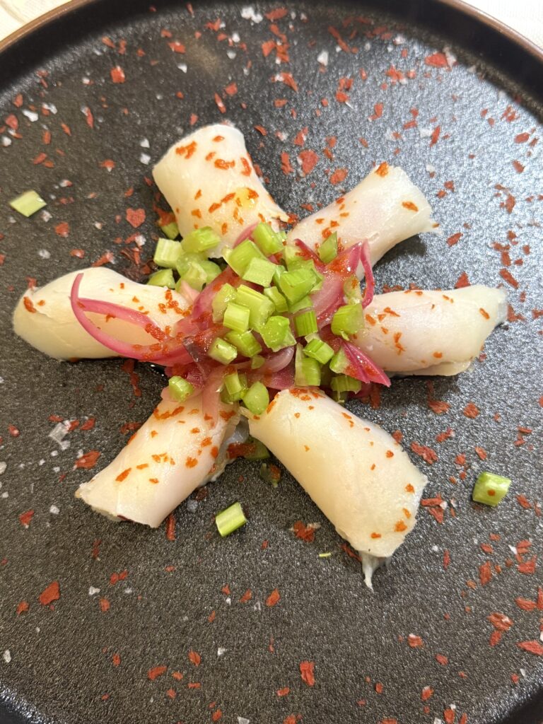 Dopo un focus sui vini e sulla bellissima storia familiare, ha preso il via la degustazione. Per l‘occasione la chef Alessandra Strazzeri ha selezionato pregiati ingredienti, dall’ostrica, all’astice, passando per il dentice e i porcini. Il tocco creativo della chef ha fatto la differenza in tutti gli antipasti. La serata ha preso il via con il benvenuto “La Dea Bianca” con riso, ostrica, limone e lampone, abbinato a Carrico 68.8. A seguire la rosa di dentice marinato servito con fichi neri freschi e l’insalata di astice e mango, dalle note fresche ed eleganti. Perfetto l’abbinamento con l’Etna Doc bianco Mari di Ripiddu. “Come un insalata di stocco”, piatto presente in carta dove il baccalà si esprime con raffinatezza al posto dello stoccafisso, ha accompagnato l’elegante Etna rosato della cantina etnea, un rosso mascherato… dalle bellissime tonalità aranciate e un tocco floreale e minerale. La degustazione si è chiusa con un grande classico d’autunno, gli eccellenti scialatelli con funghi porcini, uno degli ingredienti autunnali più ricercati e amati, serviti con l’Etna Rosso DOC. I vini di Filippo Grasso si sono fatti apprezzare per l’eleganza, la giusta componente di acidità e il grande temperamento. Piacevoli le note sapide e minerali e l’essenza del vulcano. La golosa tartelletta di frolla con crema al rum e fichi freschi ha concluso in dolcezza la cena firmata da Alessandra Strazzeri che ha datto prova della sua abilità e creatività ai fornelli.