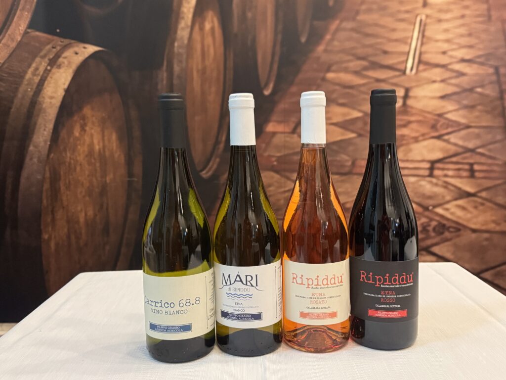 “I nostri vini, semplici e diretti – spiegano i due fratelli – vogliono essere per noi un modo per farvi vivere l’esperienza di sentire il vulcano in ogni sorso. L’unico che si sgancia dalla denominazione è il Carrico 68.8 che è un richiamo al passato, infatti lo produciamo con tutte le uve della vigna vecchia vinificate insieme, anche rosse vinificate in bianco. Carrico è un’unità di misura, valeva 68,8 litri e corrispondeva a un carico di un asino. Il nome Ripiddu invece richiama il terreno vulcanico e il “Mare di Ripiddu” da l’idea del mare di pietra che circonda i vigneti“.