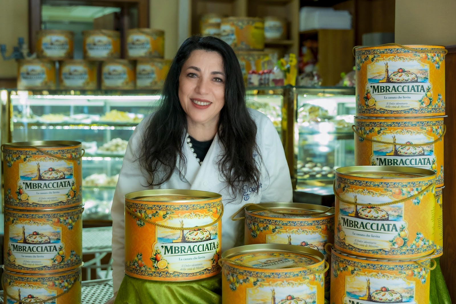 Il dolce nasce come reinterpretazione della cassata siciliana attraverso la lievitazione. Dentro tutti gli ingredienti della cassata in un morbidissimo impasto artigianale preparato con lievito madre, delizioso come un panettone ed elegante e barocco nella decorazione. La ’Mbracciata unisce infatti due anime: la tradizione siciliana della cassata e la cultura del lievitato, portata a Messina anche da uomini e donne provenienti da altre parti d’Italia che contribuirono alla ricostruzione della città.