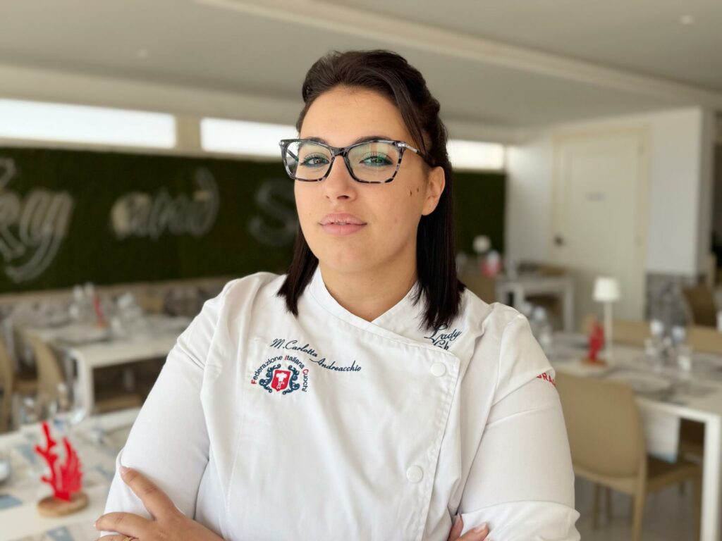 «Ricevere il terzo pennello dalla Guida Arcimboldo – ha affermato Carlotta Andreacchio – è un riconoscimento che mi riempie di orgoglio e responsabilità. È la conferma che una cucina costruita sul rispetto della stagionalità, della territorialità e della materia prima può essere letta, compresa e apprezzata. Questo traguardo però non è mai individuale. È il risultato di un lavoro di squadra quotidiano, fatto di disciplina, confronto, sacrificio ma anche di grande complicità. La mia brigata è parte integrante di questo percorso, senza di loro, senza una visione condivisa e senza il coraggio di crescere insieme, nulla di tutto questo sarebbe possibile. Sono fiera perché questa guida ha riconosciuto non solo dei piatti, ma una filosofia di cucina che racconta un luogo, una stagione, un’identità. Ed è da qui che continuerò a partire, ogni giorno, con la stessa umiltà e la stessa determinazione». Carlotta Andreacchio, classe ’88, si divide tra gli impegni da chef della Trattoria del Marinaio di Galati Marina, fondata dal padre, la docenza al CIRS onlus (Centro di Formazione professionale) di Messina, e gli impegni da Tesoriera provinciale della delegazione messinese dell’Associazione Cuochi della FIC (Federazione Italia Cuochi) e delegata provinciale dell’Associazione Lady Chef.