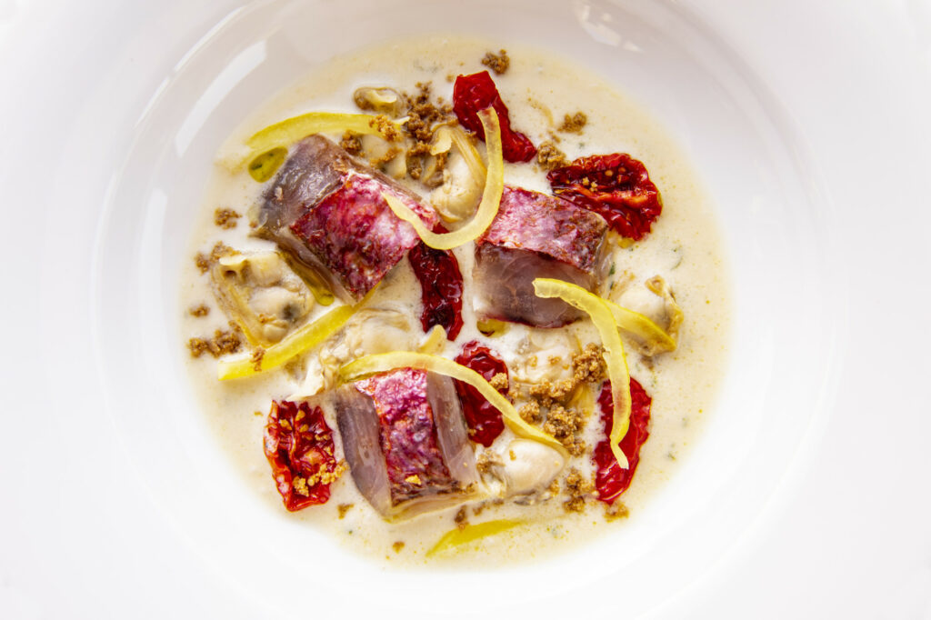 - Oltremare: menu di pesce in 8 portate, che include anche il progetto sul pesce frollato