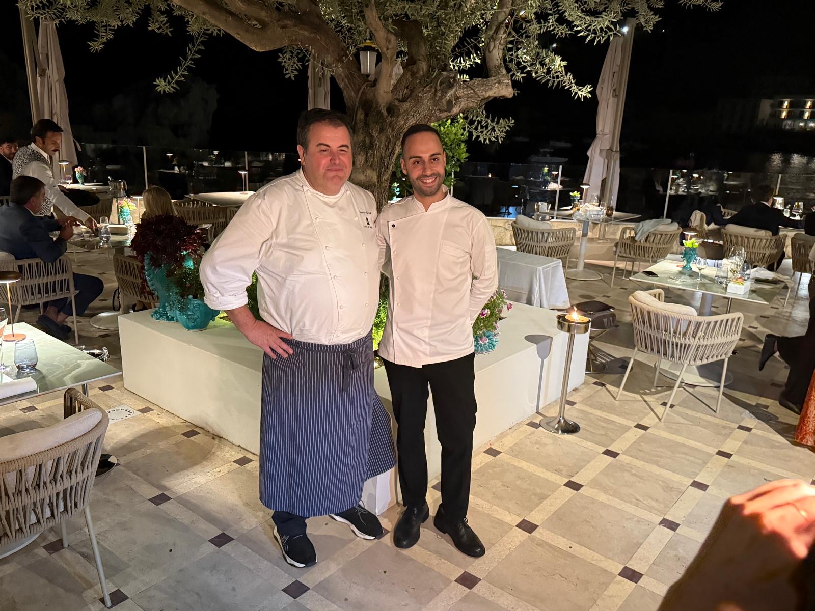 La cucina d’autore che spicca per pensiero e capacità creativa in una serata magica firmata Mazzarò Sea Palace, nell’incantevole terrazza sospesa sul mare di Taormina. Gli chef Gennaro Esposito, 2 stelle Michelin de La Torre del Saracino di Vico Equense, e Riccardo Fazio, executive chef del Mazzarò Sea Palace di Taormina che guida i ristoranti Blum e Armonìa, il 29 settembre scorso sono stati protagonisti di un incontro a quattro mani che resterà nella memoria degli ospiti dell’esclusivo cinque stelle lusso del gruppo VRetreats, guidato brillantemente dalla direttrice Marilena Calabrò. L’hotel Mazzarò Sea Palace è risultato il quinto albergo più votato nella classifica del lusso su Tripadvisor e sono tanti gli investimenti fatti legati anche al restyling della struttura , come spiegato dall’Operation Manager VRetreats Roberto Oldano, presente alla serata.